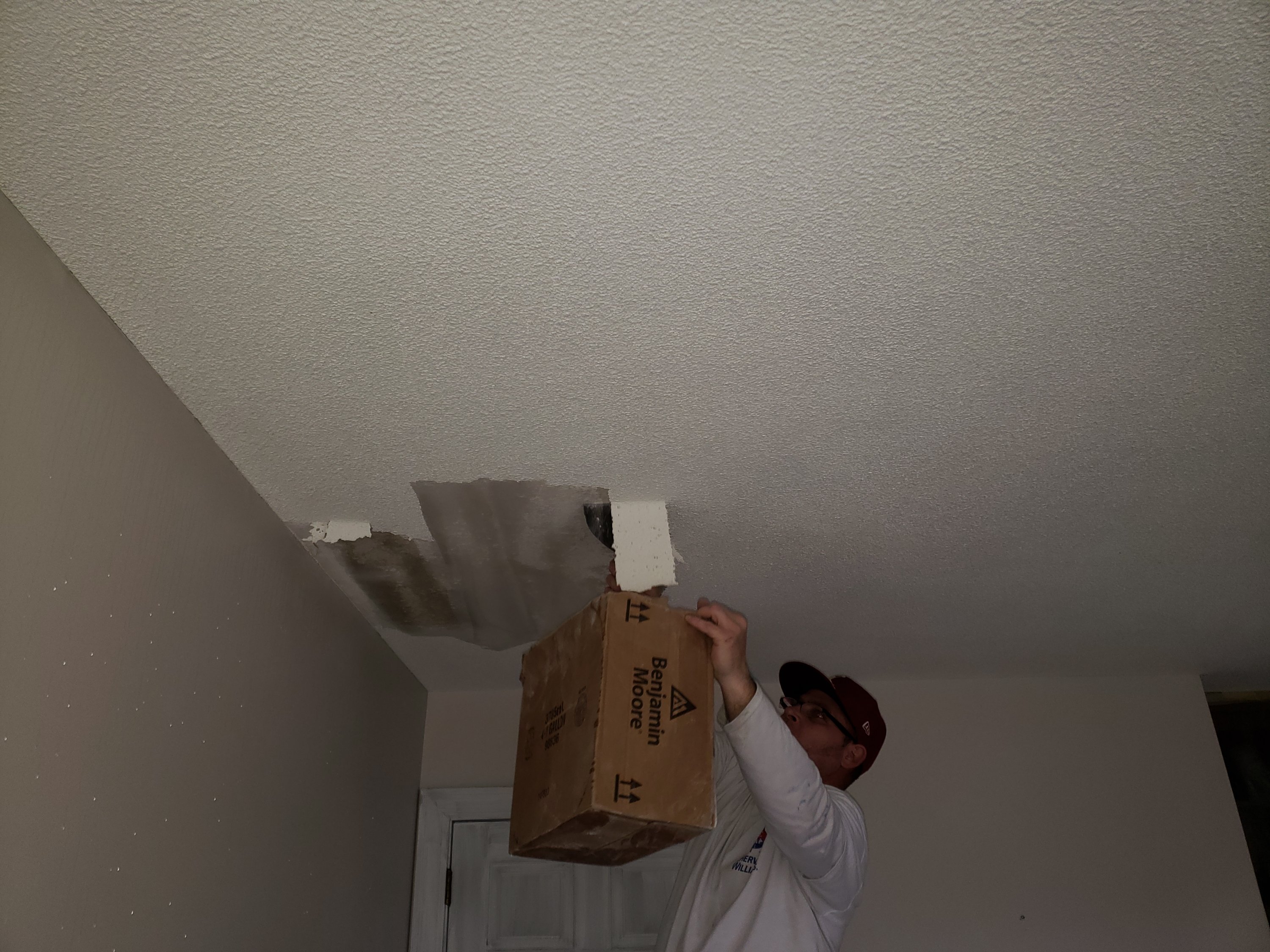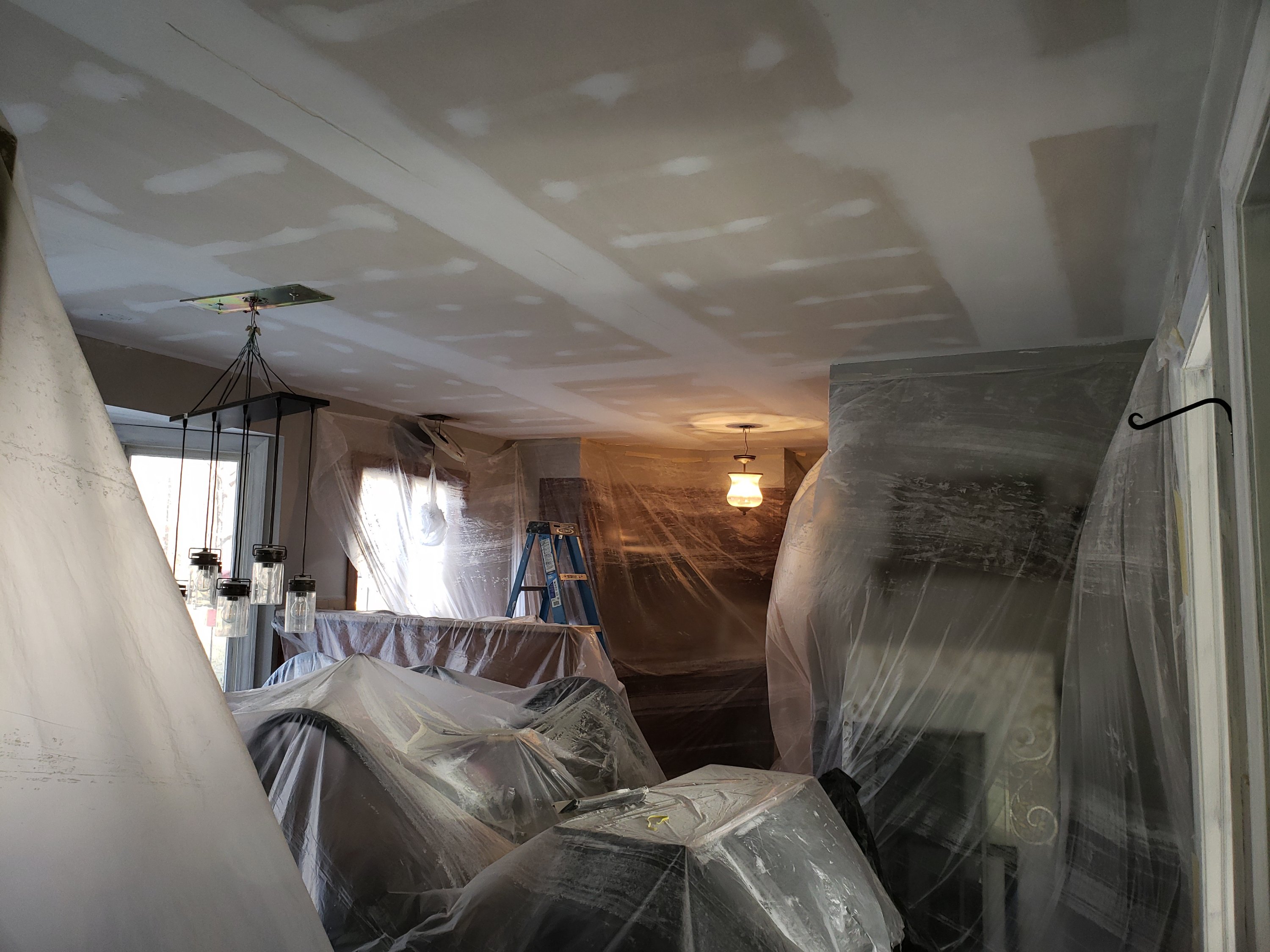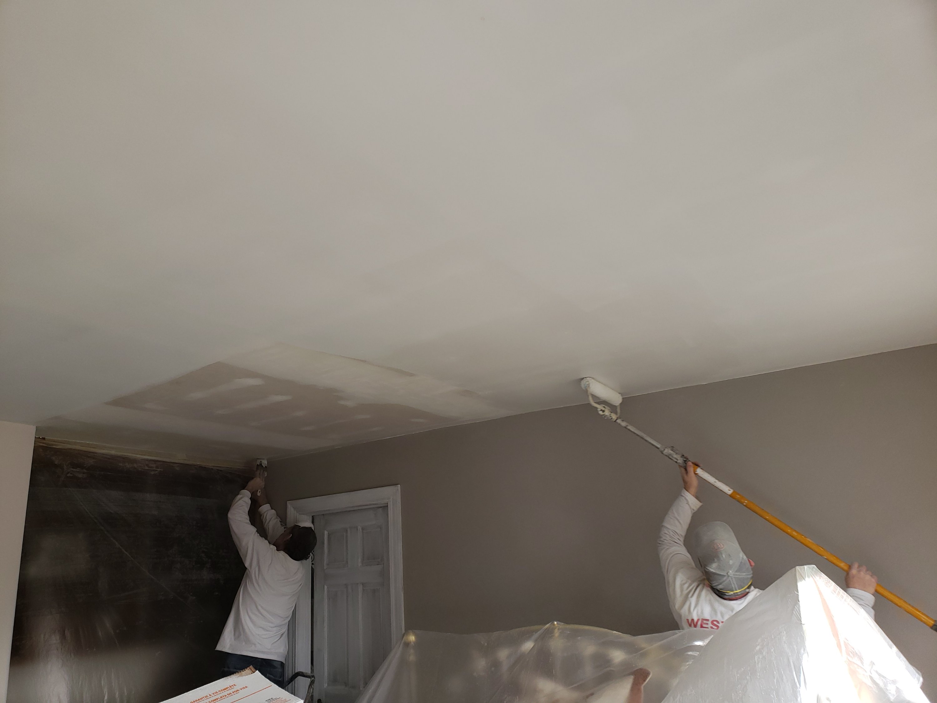 Repaired all the tape on ceiling, sanded and finish paint ceilings.
