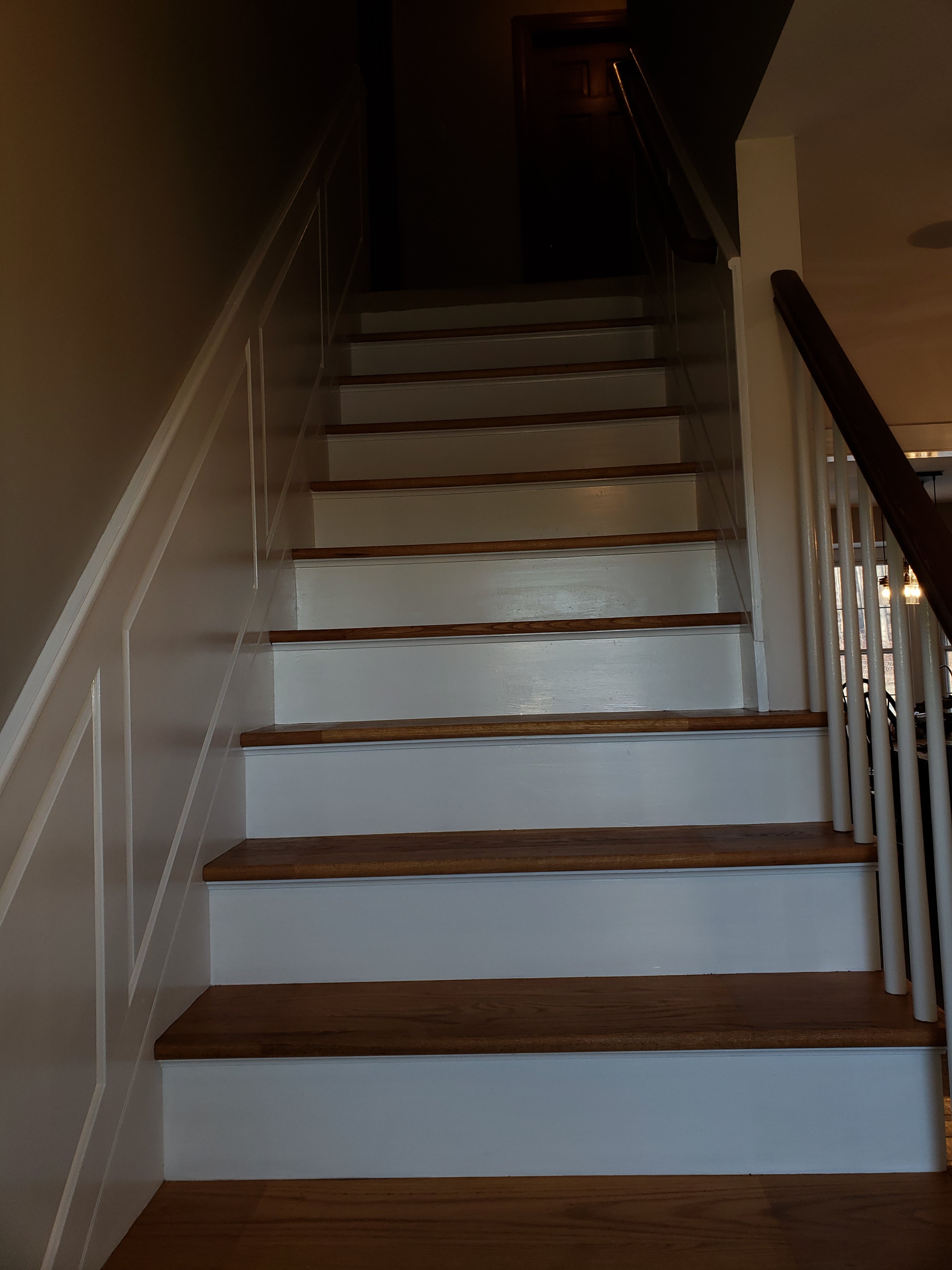 Applied 2 finish coats on wood work using regal select paint semi gloss white from Benjamin Moore.