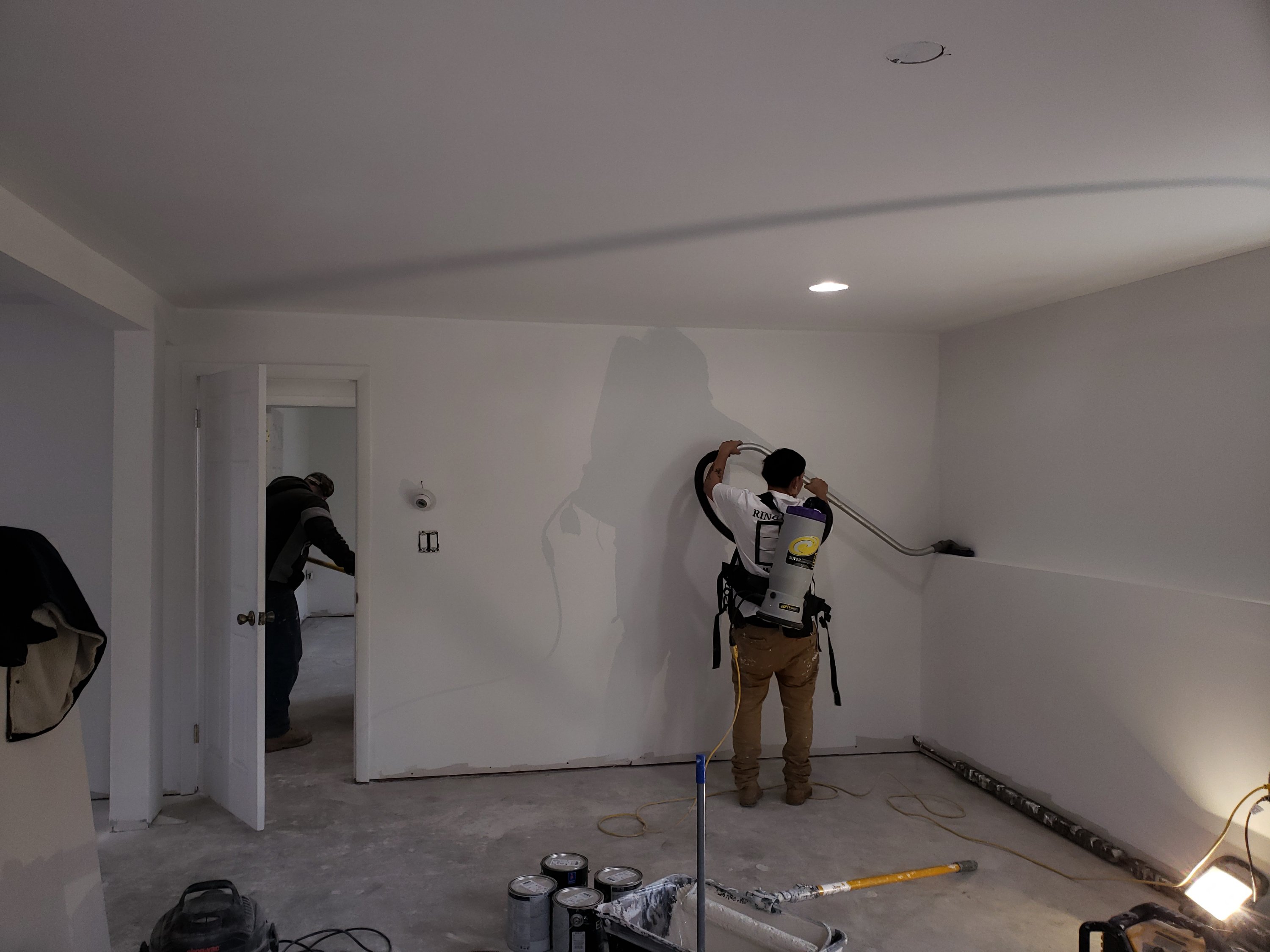 Second thing we vacuum ceilings and walls to remove dust from sanding.
