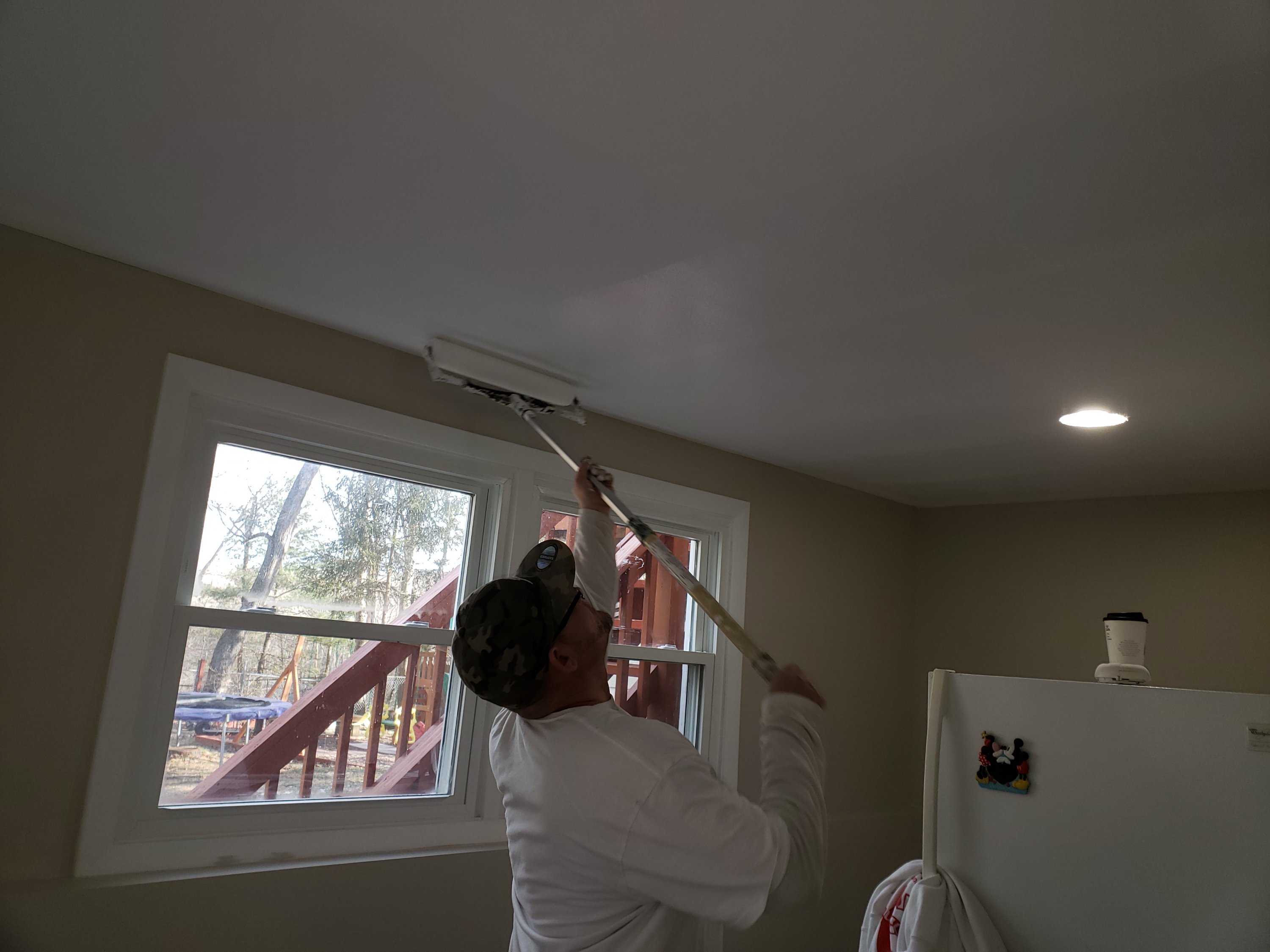 Repaired all the tape on ceiling, sanded and finish paint ceilings.